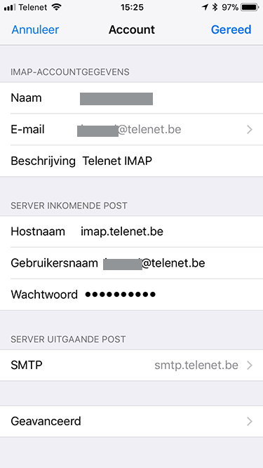 telenet mail instellen iphone